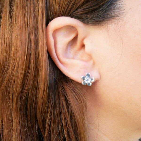 עגילי פרח צמודים מכסף אמיתי בשילוב אבן זירקון
