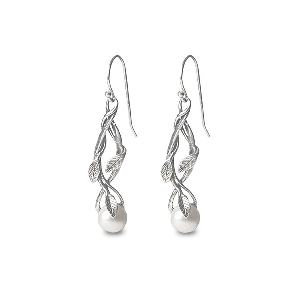 עגילים מעוטרים עלים מכסף אמיתי 925 בשילוב אבן פנינה