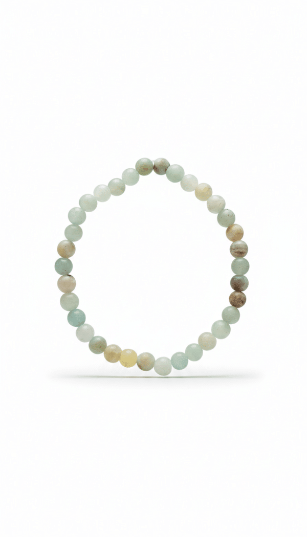צמיד יד נשי ורענן המורכב מאבני אמזונייט טבעיות בקוטר 6 מ"מ בגווני טורקיז-ירקרק רכים, המעניקים תחושה של שלווה, איזון ורעננות. כל אבן ייחודית בגווניה ובטקסטורה הטבעית שלה, מה שיוצר מראה עשיר אך עדין שמשתלב בהרמוניה עם כל סגנון.